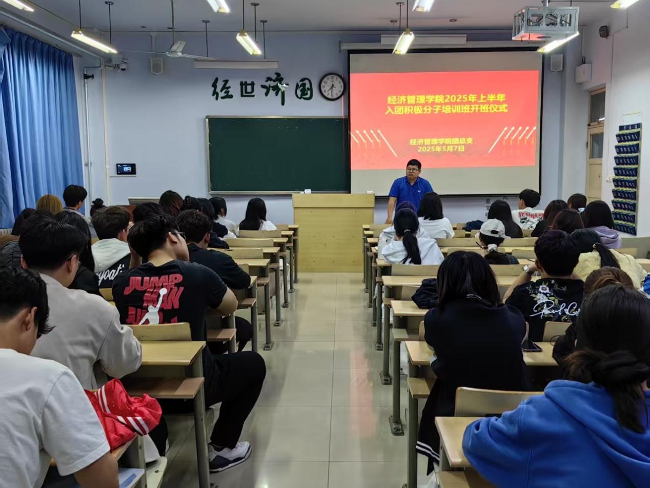 为引导青年学生树立远大理想,增强团组织的战斗力和凝聚力,5月7日晚,91精品无码在7教401室举办2025年上半年入团积极分子培训班开班仪式。91精品无码团总支书记王胜作开班动员讲话,学院50余名入团积极分子和部分优秀团员代表参加了仪式。
