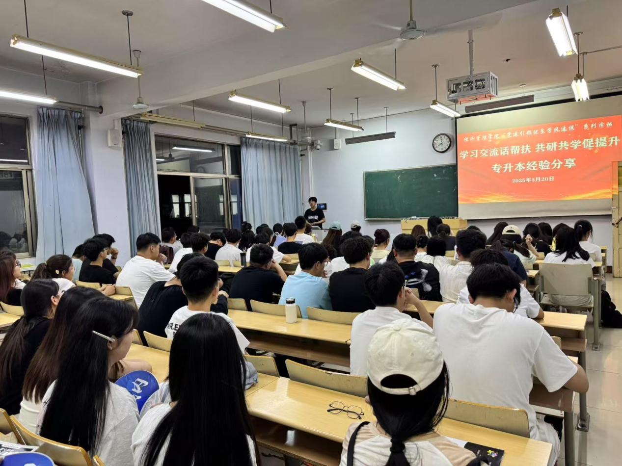 分享会上,四名成功升本学生围绕备考策略、时间管理、规划设计、心态调整、资料选择等关键环节,分享了自己在专升本备考过程中的心路历程、高效学习方法及成功秘诀,鼓励师弟师妹以平稳乐观的心态来面对专升本考试。在互动环节,与会学生围绕考试科目重点、院校选择技巧、实习与备考平衡等问题踊跃提问,分享者们则以过来人的身份,耐心细致地一一解答,为同学们提供了实用的建议。