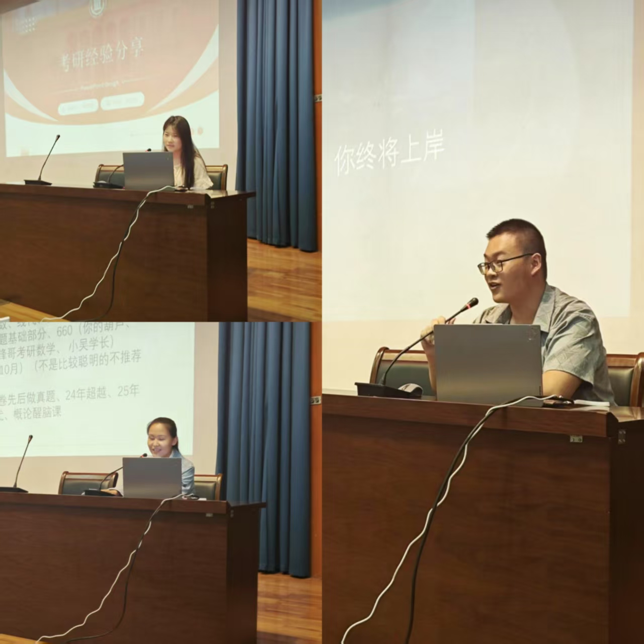 会上,2025届7名考研上岸学生结合自身的考研实战经验,围绕院校专业定位、全周期备考方案、核心科目攻坚技巧以及高压环境下的心理调适方法等维度,进行了系统全面的讲解,并将总结提炼的个性化备考策略倾囊相授,为在场学生提供了兼具针对性与实用性的备考指南。最后,辅导员张孝宁号召同学们坚定理想信念,以十足的准备、百分的激情、万分的精气神去迎接这场人生的重要挑战,实现自己的考研梦。