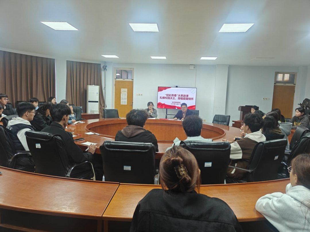 寻根活动结束后,一场气氛热烈的“知校·爱校·荣校”主题的“师生零距离”座谈会随即召开。座谈会上学生科长王胜领学习近平总书记给天津大学全体师生的回信精神、关于青年工作的重要论述,强化思想引领力。随后,学院党委副书记苏成荣简要回顾学院20周年的发展历程,并围绕学院学科建设成果与人才培养方向展开介绍,从专业特色、课程体系到发展前景,为新生勾勒出清晰的学业成长蓝图。与会学生代表踊跃发言,结合校史见闻与入学体验,分享感悟、畅谈未来。同学们纷纷表示,要将对学校的热爱转化为刻苦学习、参与实践、为校争光的具体行动,用奋斗书写属于自己的“经彩青春”。